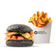 Pane al nero di seppia, burrata campana, polpo abbrustolito, rape scottate, granella di pistacchio, pomodorini confit. Accompagnato da patatine
