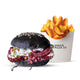 Pane al nero di seppia, salmone affumicato, avocado, salsa teriaki, philadelphia, zucchine croccanti. Accompagnato da patatine